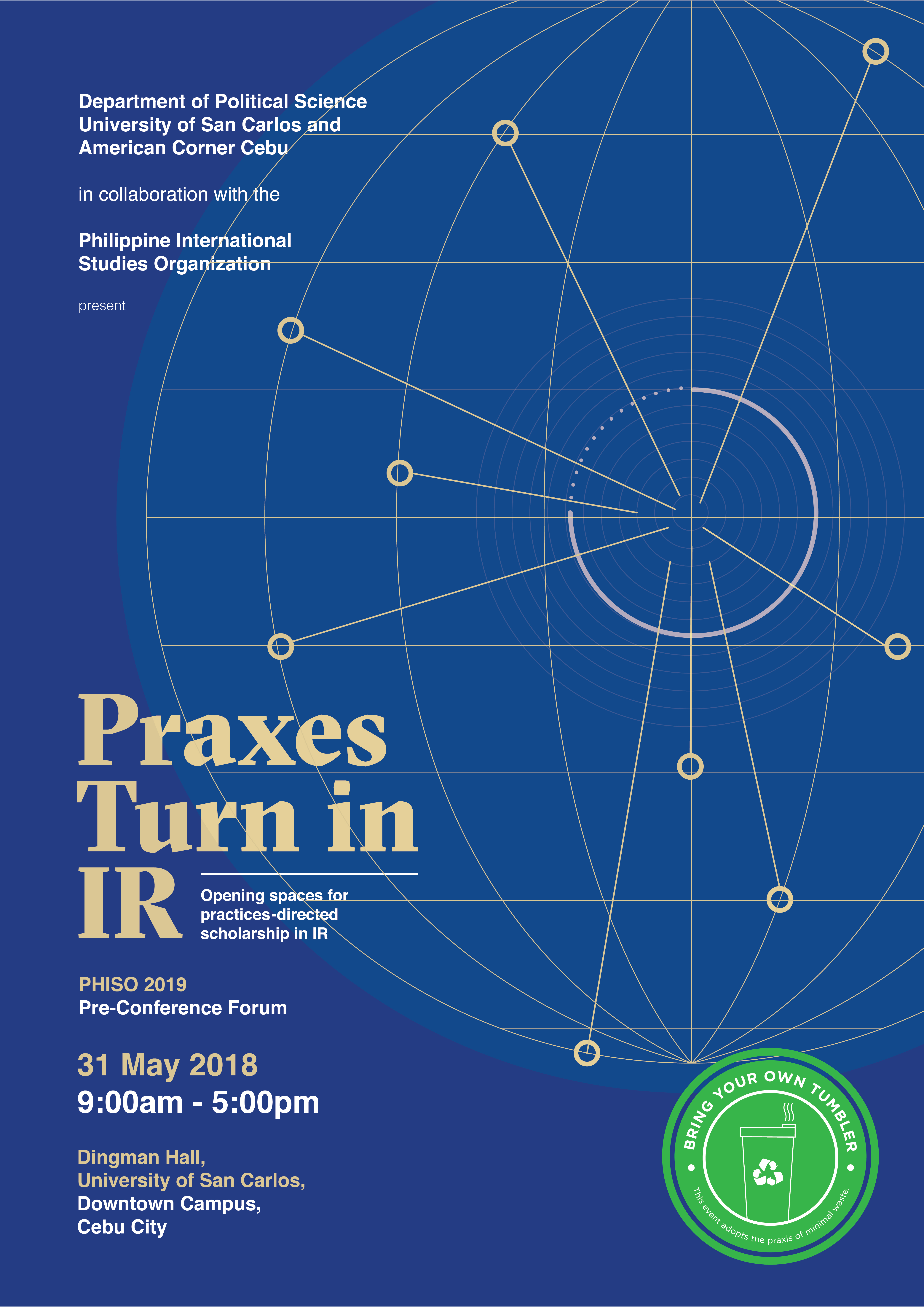 The study of international relations typically gravitates towards decrypting “axiomatic givens” such as state rationality, national interest or regional identity. Moreover, intellectual diversity tends to be ideational with paradigmatic clashes that generates synthesis from theoretical reason as epitomized, for instance, by the “neo-neo” debate following the realism-idealism face-off. Nevertheless, IR as a discipline is not bereft of alternative approaches to studying the international. Thus, from interrogating the discipline to rethinking regions in global IR context, this prolegomenous forum broaches the “practice turn” in IR, the approach of privileging pragmatic imperatives as evidence by analytical units’ proclivities and practices in relational conduct instead of foundational logics in IR scholarship. Thus, in presenting IR realities as products of practices instead of being preordained by theoretical reason, the approach encourages inter-paradigmatic dialogue, if not syncretism, rather than synthetization in understanding world politics. For this forum, particular attention will be given to culture as performance of practices in anticipation of a workshop that identifies more for the upcoming 2019 PHISO International Conference. Meanwhile, as discussion of IR scholarship careens into practices, the forum will imbricate career potentialities in store for IR scholarship. Accordingly, preliminary consideration shall be vested upon the following topics: