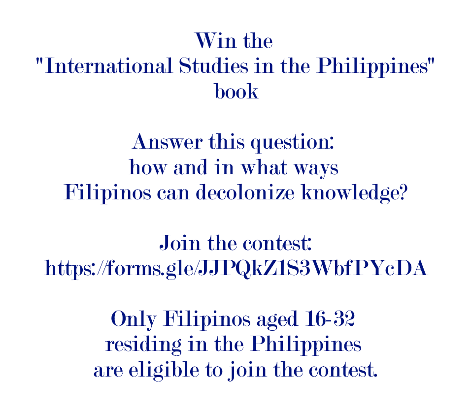 We are delighted to announce the result of the essay competition for the PHISO book, “International Studies in the Philippines.” After a careful review and deliberation of all 16 submissions, the board of judges has decided to award the following individuals: