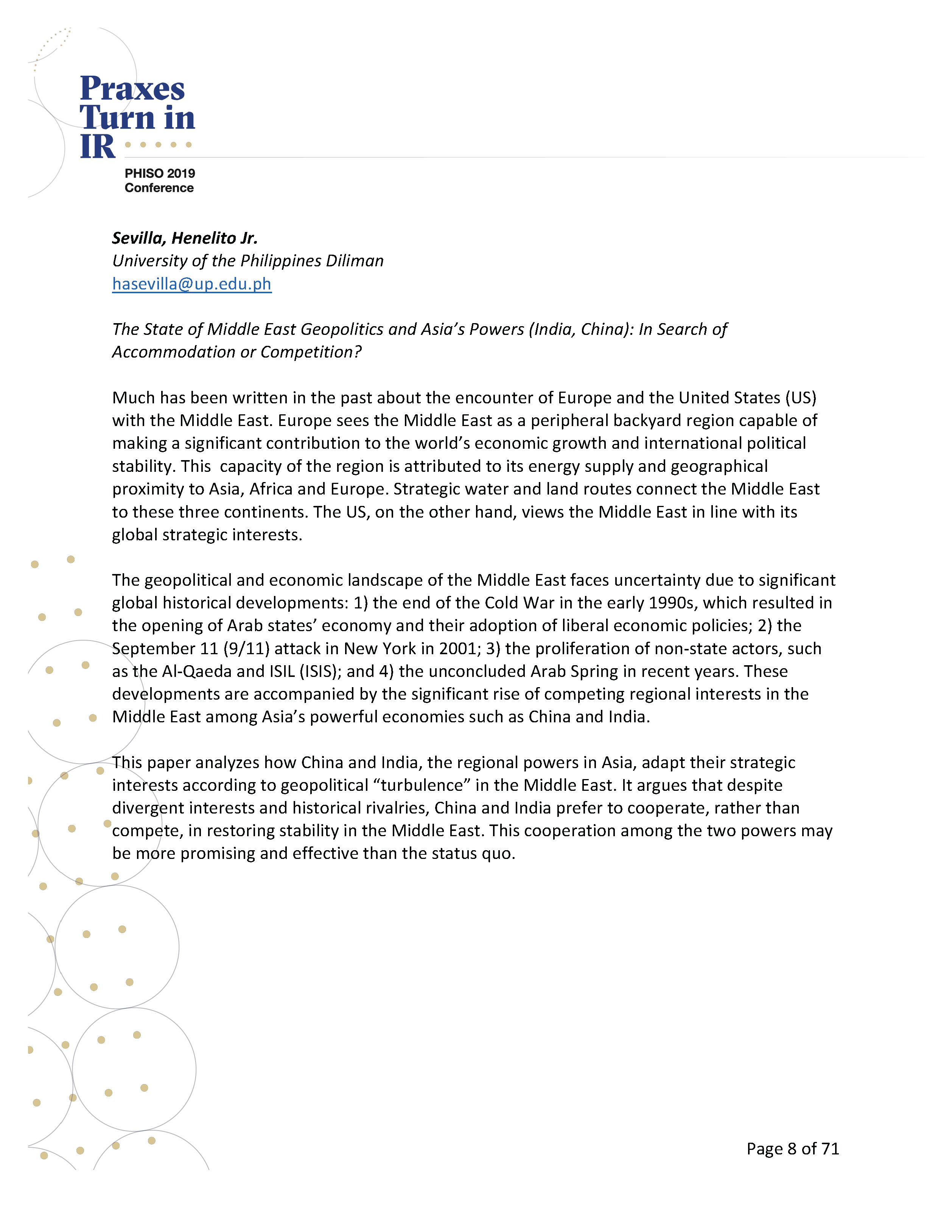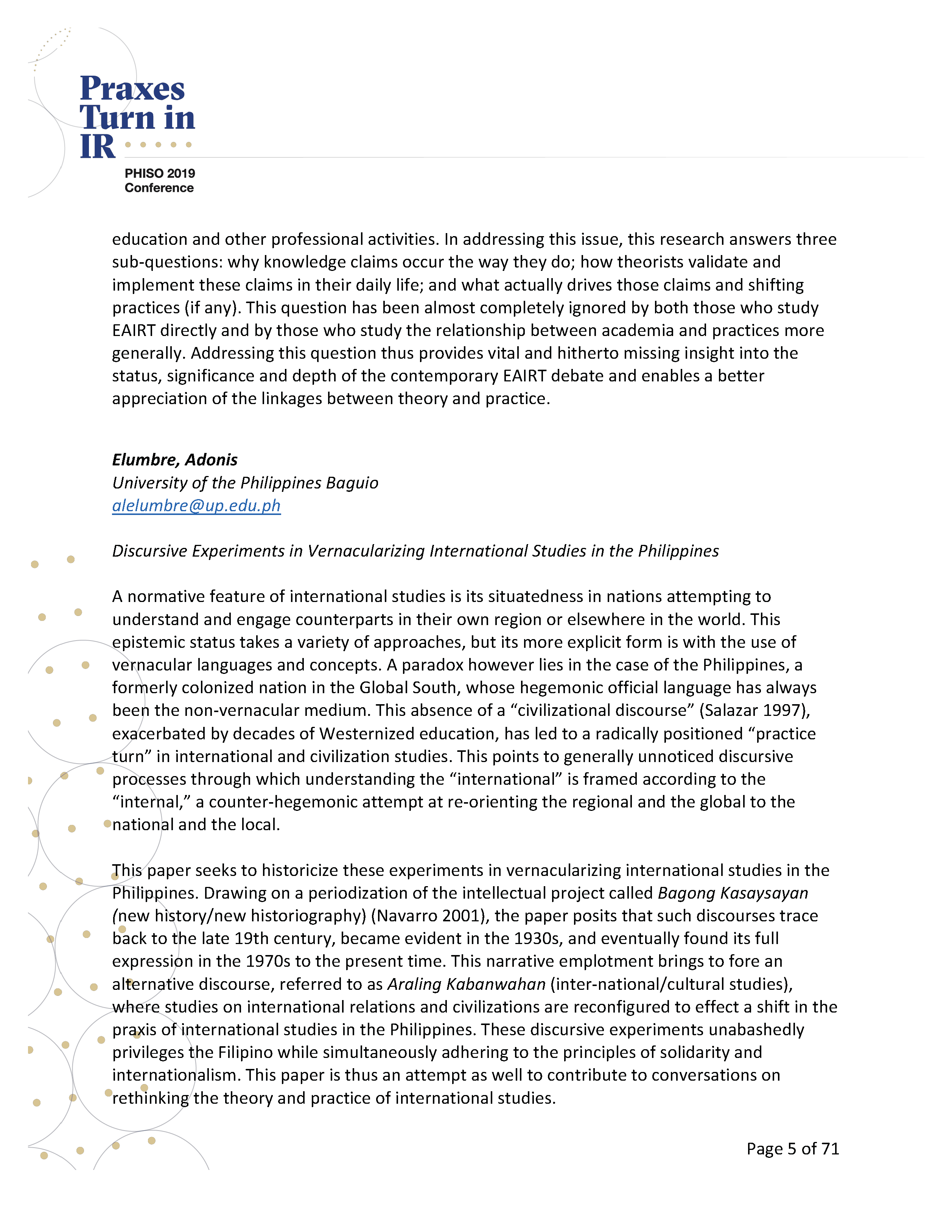PHISO’s CfP aimed to elicit research on Global South IR perspectives with a particular focus on theories, methodologies, practices and their convergence. Accordingly, workshop paper presenters are encouraged to pursue the publication of their work as part of an edited volume or monograph in PHISO’s Routledge book series, International Relations in Southeast Asia, or as journal articles.