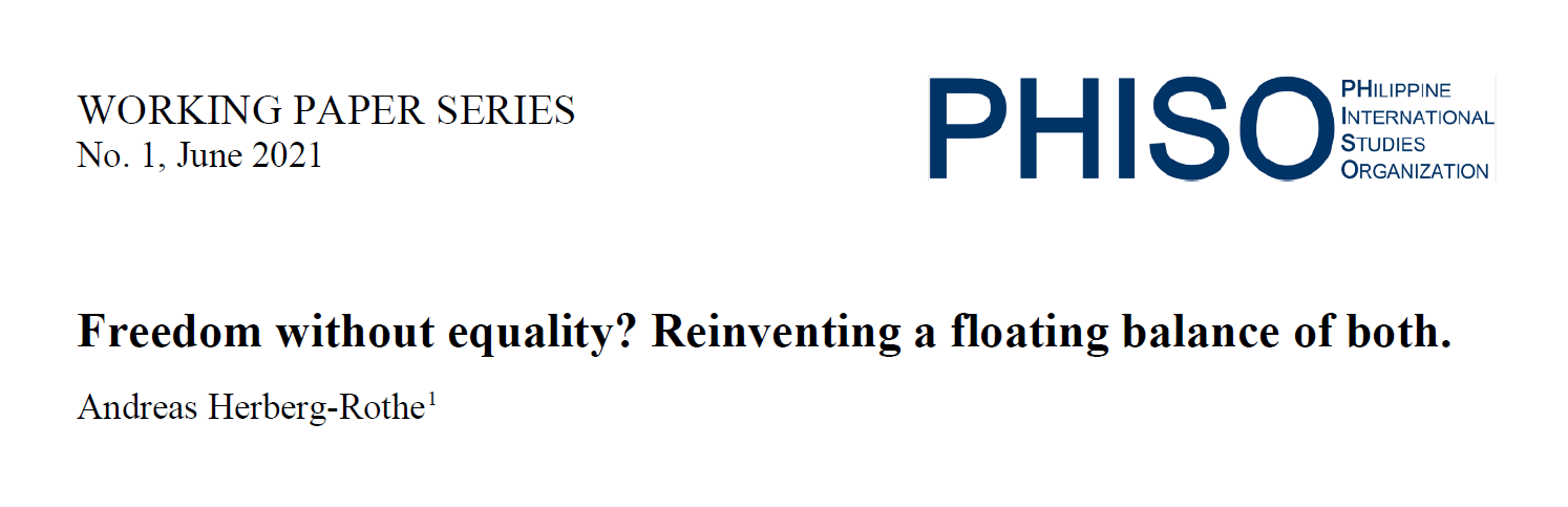 This draft for further research attempts to navigate the longstanding tension between freedom, equality, and inequality in normative political theory. There is an undeniable gap between the ideals of numerical (absolute) equality—embodied in constitutions —and the realities of obscene social inequalities throughout the world.… Continue Reading “PHISO Working Paper Series: “Freedom without equality? Reinventing a floating balance of both” by Andreas Herberg-Rothe”